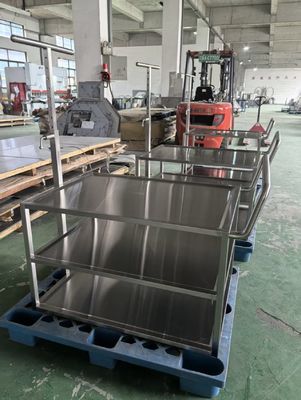 このステンレス鋼のトランスポートカートは 病院,研究室,クリーンルーム,その他の無菌な環境のために設計されています.衛生と構造の安定性制御されたエリアで道具,機器,医療用品を運ぶのに最適です